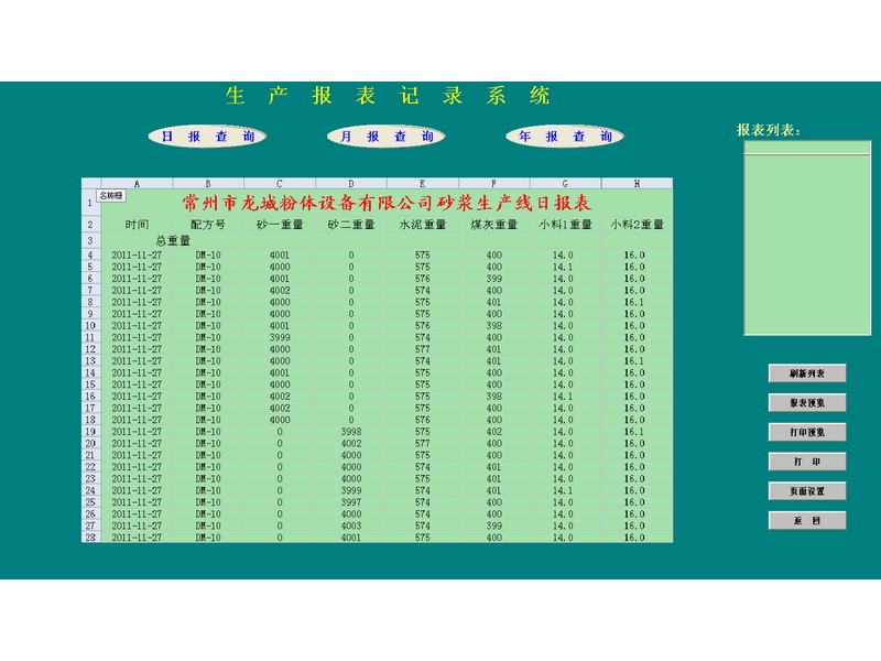 系統(tǒng)將會自動生成報表,自動記錄客戶的生產(chǎn)狀態(tài)、物料性狀、生產(chǎn)時間,為客戶的生產(chǎn)管理及材料進出庫提供了直面的數(shù)據(jù)化資料。