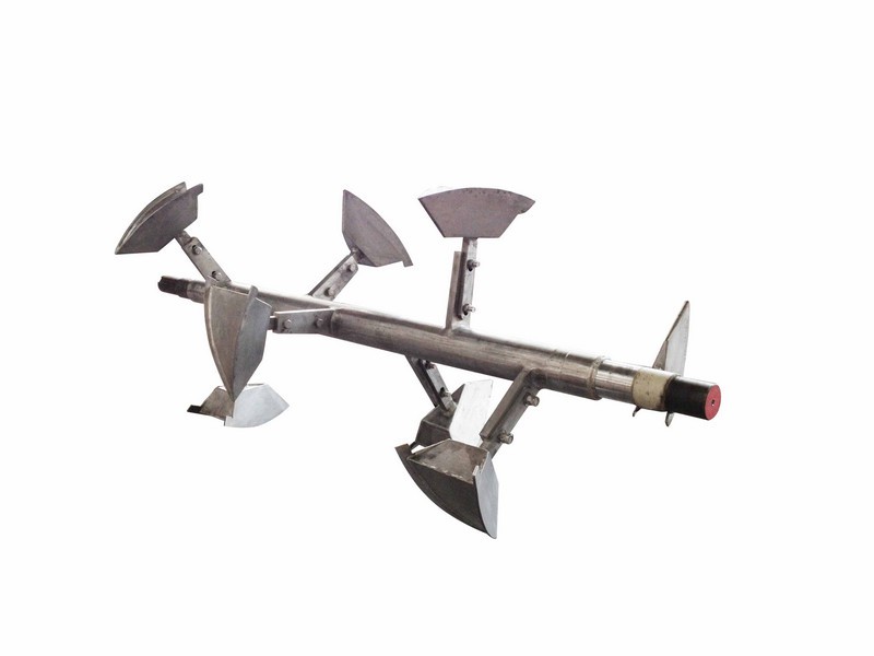 該混合機(jī)工作時(shí),主軸以適當(dāng)?shù)霓D(zhuǎn)速帶動(dòng)犁刀旋轉(zhuǎn),飛刀由電機(jī)直接驅(qū)動(dòng)作高速運(yùn)動(dòng)。筒內(nèi)物料受犁刀作用而拋起,一部分沿筒壁作圓周運(yùn)動(dòng),另一部分被拋向筒體中心或沿犁壁法線方向向筒體兩端飛散,進(jìn)行浮游式擴(kuò)散混合。物料流經(jīng)高速旋轉(zhuǎn)的飛刀時(shí),被高速剪碎和強(qiáng)烈擴(kuò)散,進(jìn)行剪斷擴(kuò)散混合。粉粒體在機(jī)內(nèi)的運(yùn)動(dòng)軌跡縱橫交錯(cuò),互相撞擊,產(chǎn)生洶涌的渦流,在極短的時(shí)間內(nèi)達(dá)到均勻的混合。